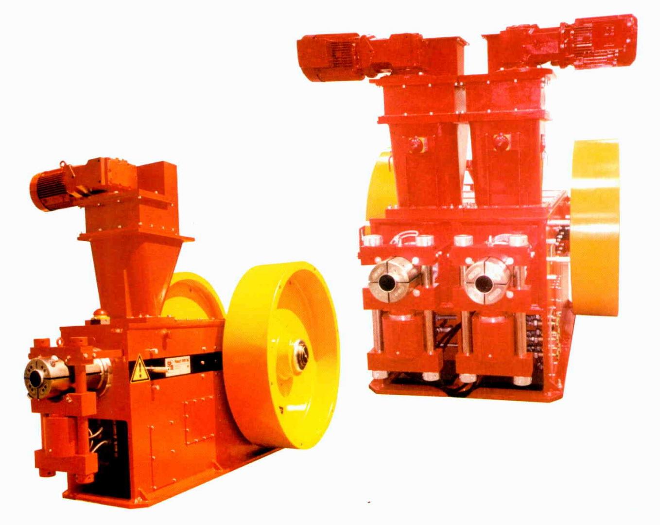 These briquetting presses are being built since 1943 and are adapted to the modern requirements and wishes. The presses make an approximately square briquette shape (four-bladed shape). Advantage: better stack ability.